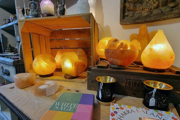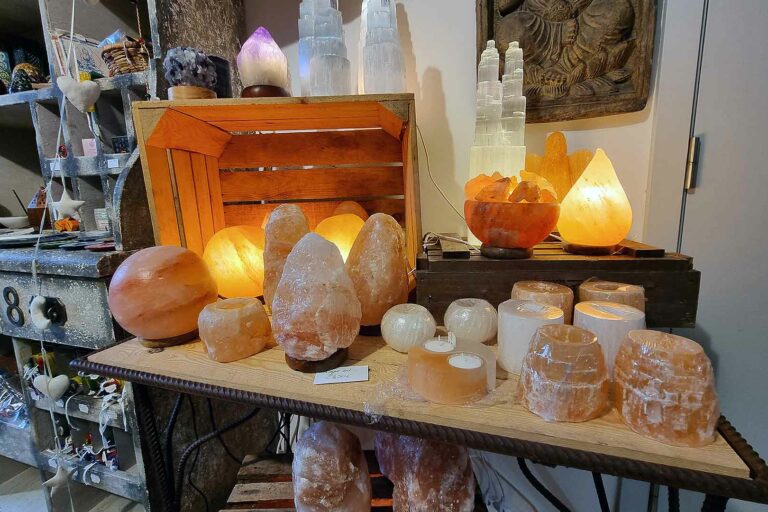 Vous trouverez dans notre boutique un choix de lampes originales en sel de l’Himalaya, en sélénite, en fluorite, en quartz rose et en améthyste. En plus d’être décoratives et de diffuser une douce lumière d’ambiance, les lampes de sel auraient diverses vertus, notamment apaisantes et purifiantes. Offrez(-vous) un bel objet de décoration zen !